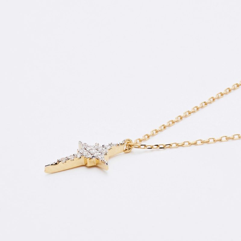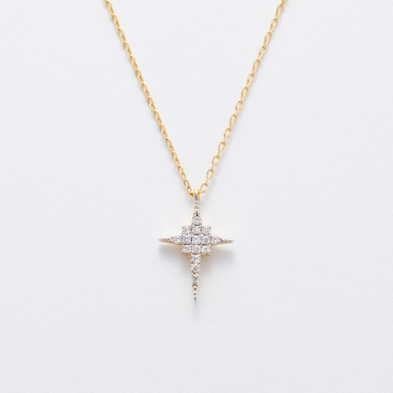 シャープなフォルムのクロスデザインネックレス。個性的なデザインはシンプルコーデののワンポイントに。