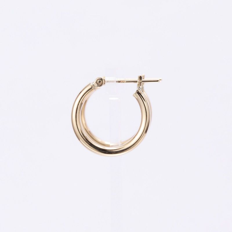 少し小さめのフープピアスです。シンプルなデザインは重ねて着けても、それだけ着けても存在感を放ちます。