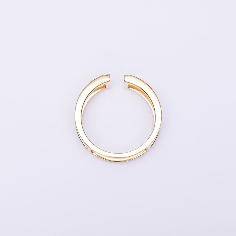 K18イエローゴールドのリングです。都会的な幅広のデザインで、ダイヤモンドとイエローゴールドのラインのみで指輪をデザインしてあります。余計な物が何もないので、どんな服装にもあわせて頂けます。