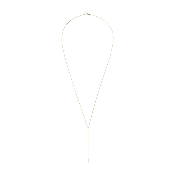 ロングチェーンとダイヤモンドが敷き詰められたバーがトレンド感たっぷりのネックレス。揺れる度にリッチな輝きを放つ、大人の女性にぴったりのコレクション。