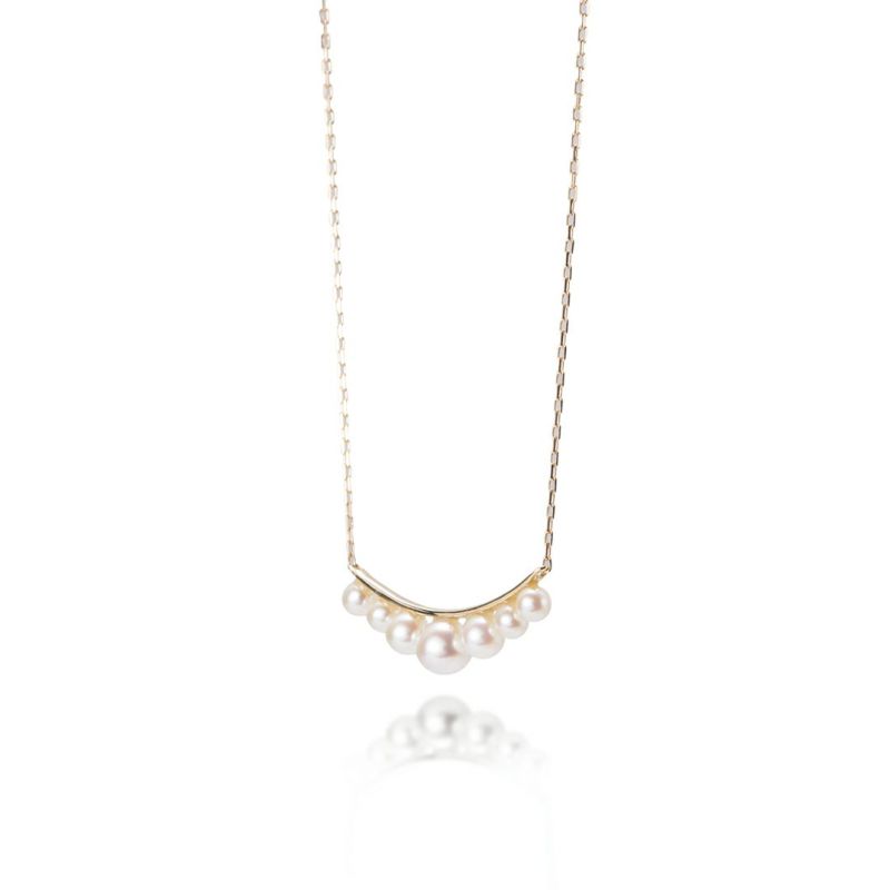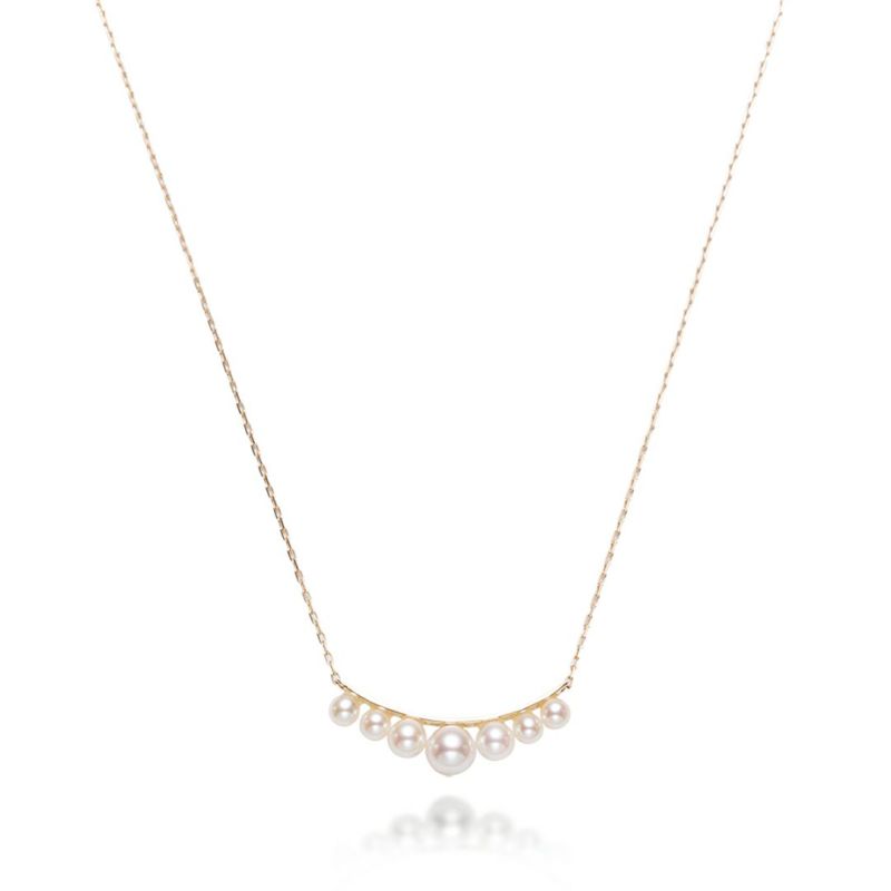 ベビーパールを7石連ねたネックレスです。たおやかなあこやベビーパールは、美しい輝きを放ちます。