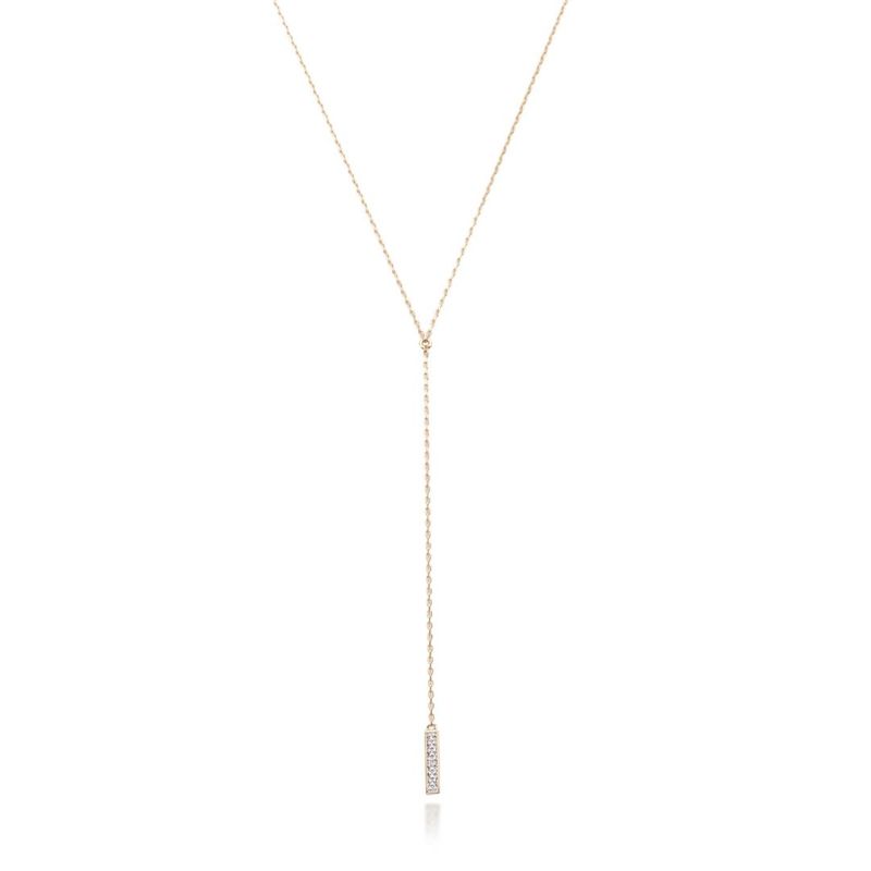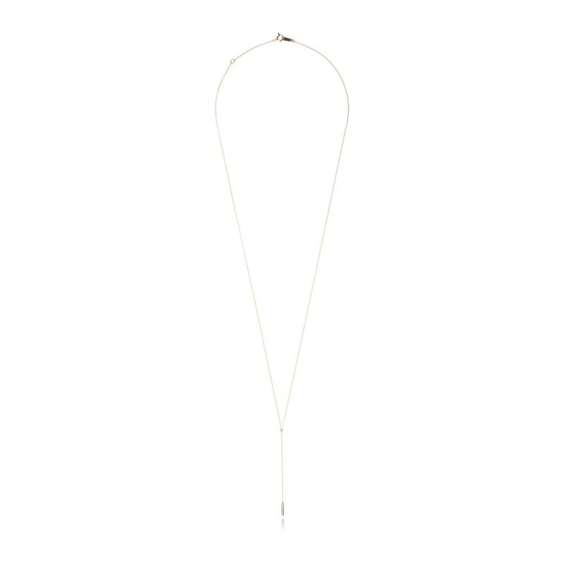 ダイヤモンドバーを使用した、Y字ネックレスのご紹介です。Y字ネックレスは、首元を美しく見せてくれると言われています。どの角度からでもたおやかに光るダイヤモンドをお召ください。。