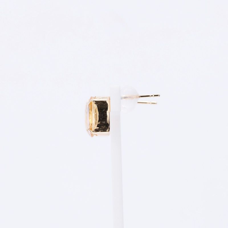 大粒シトリンをイエローゴールドに留めたシンプルなピアスです。石の美しさが目を引きます。