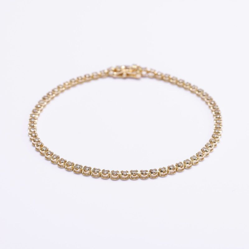 K18イエローゴールドのラインブレスレットです。ダイヤモンドを贅沢に使った存在感のある華やかなブレスレットです。