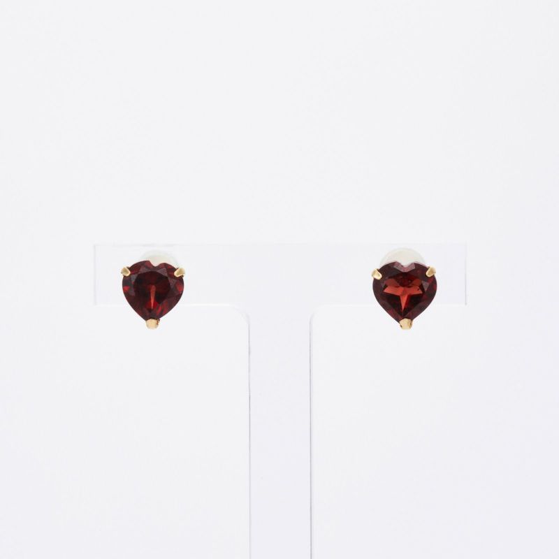 K18イエローゴールドのロードライトガーネットピアス。ハートシェイプのロードライトガーネットが可愛らしく耳元を彩ります。