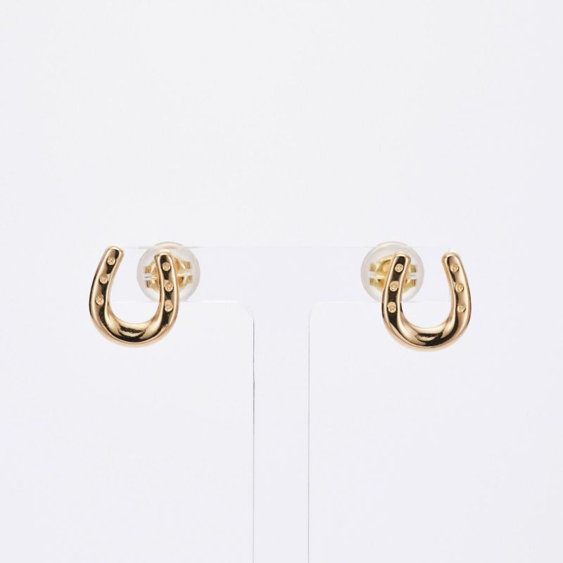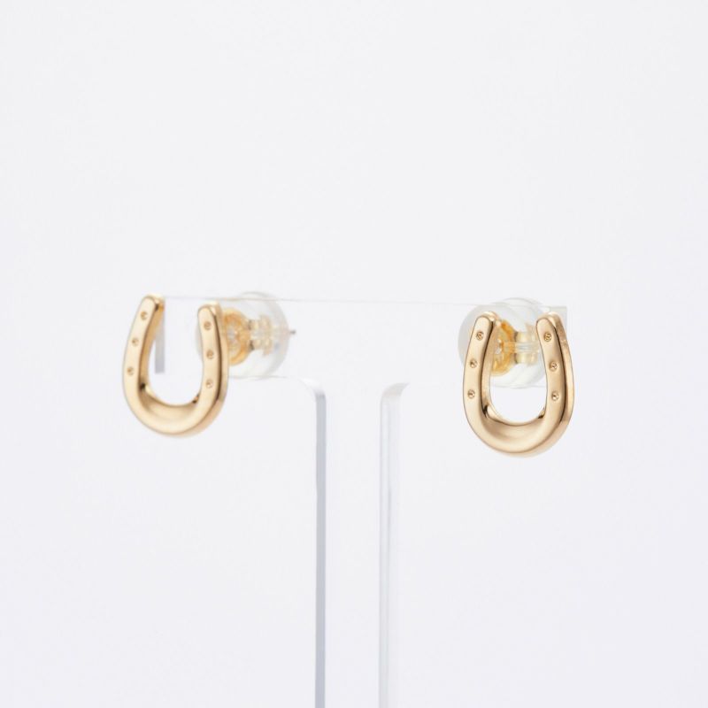 幸せを貯める幸運のモチーフと言われる馬蹄のデザイン。K18イエローゴールドの輝きを耳元でお召しください。