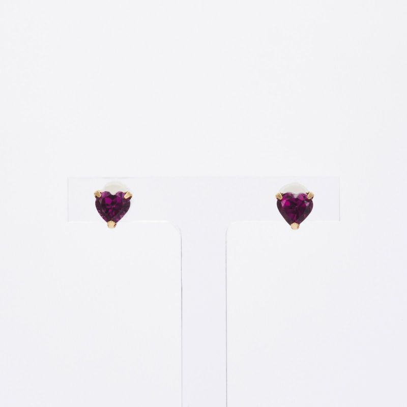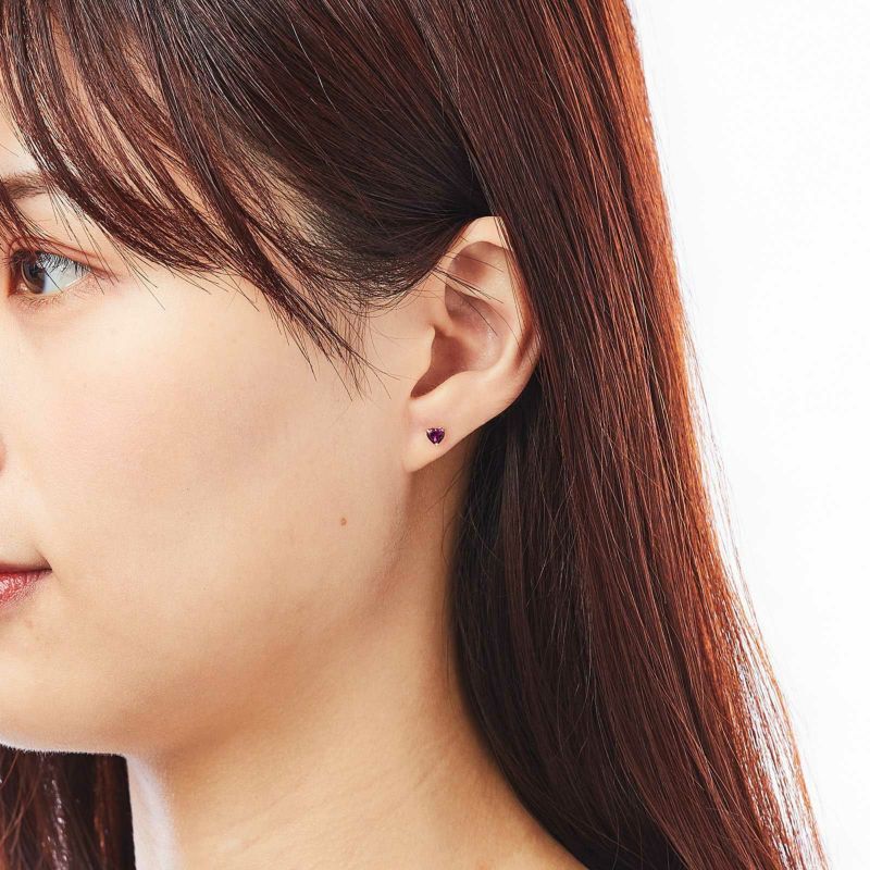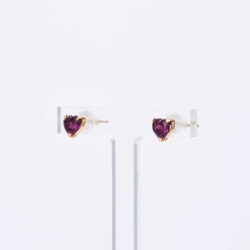 K18イエローゴールドのロードライトガーネットピアス。ハートシェイプのロードライトガーネットが可愛らしく耳元を彩ります。