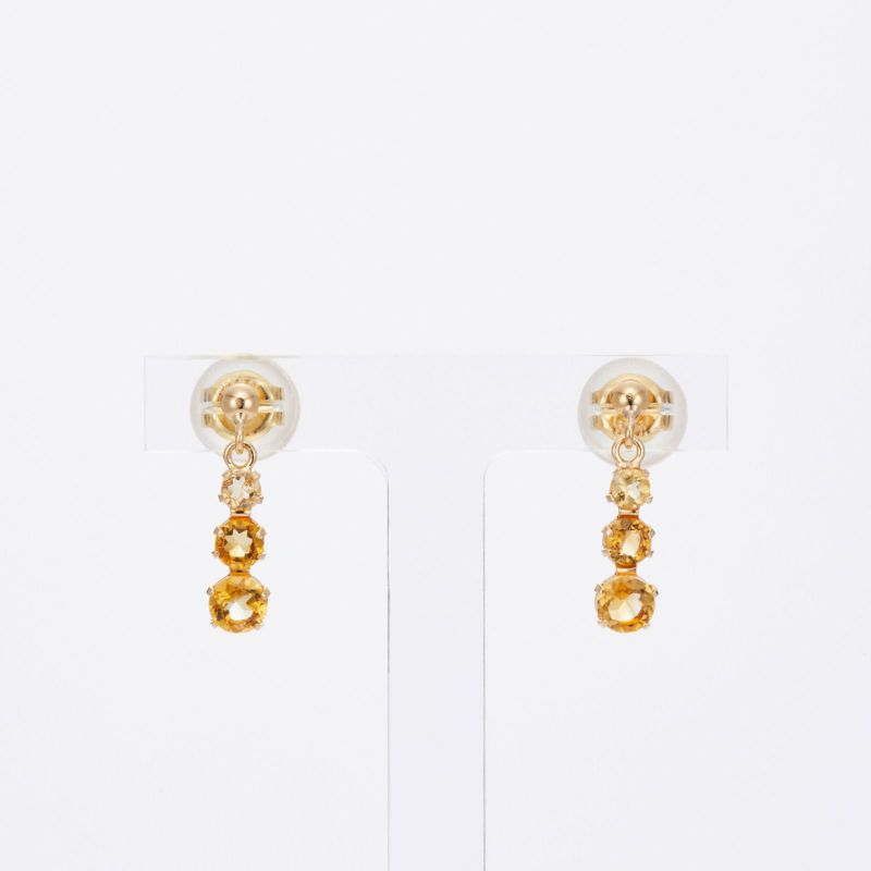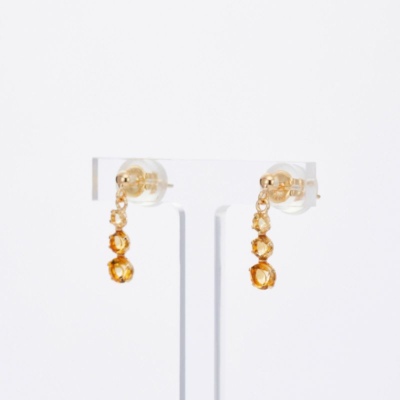 大きさの違う3Pのシトリンをグラデーションにセットした大人可愛いピアスです。