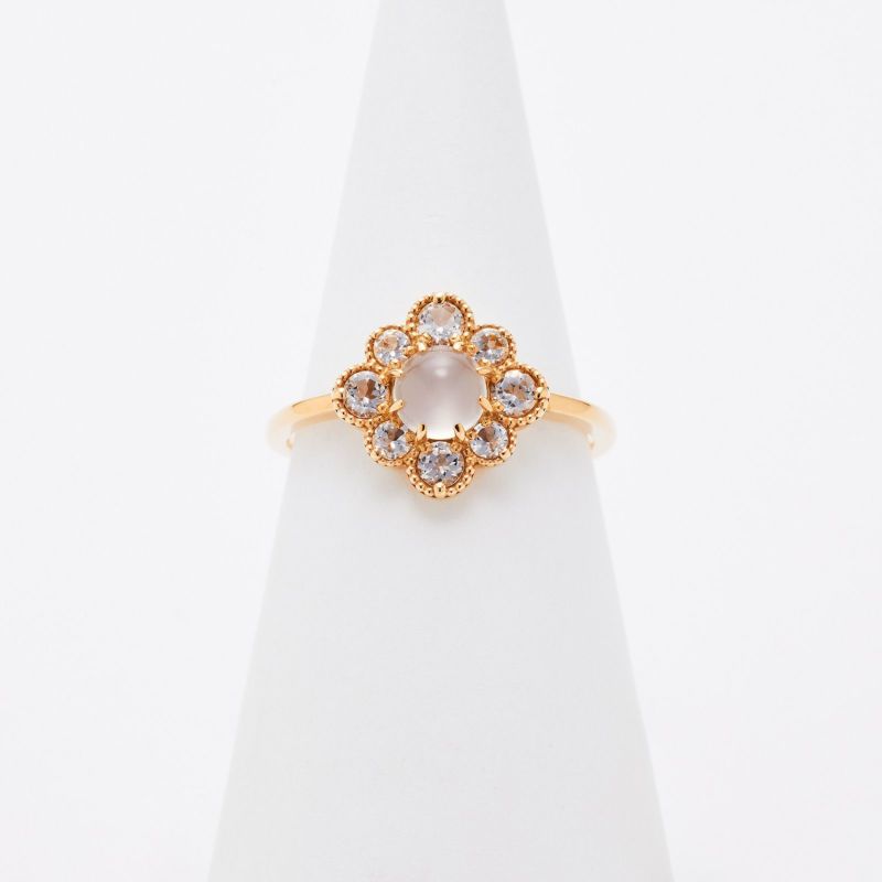 K10イエローゴールド ムーンストーン/ホワイトトパーズ リング