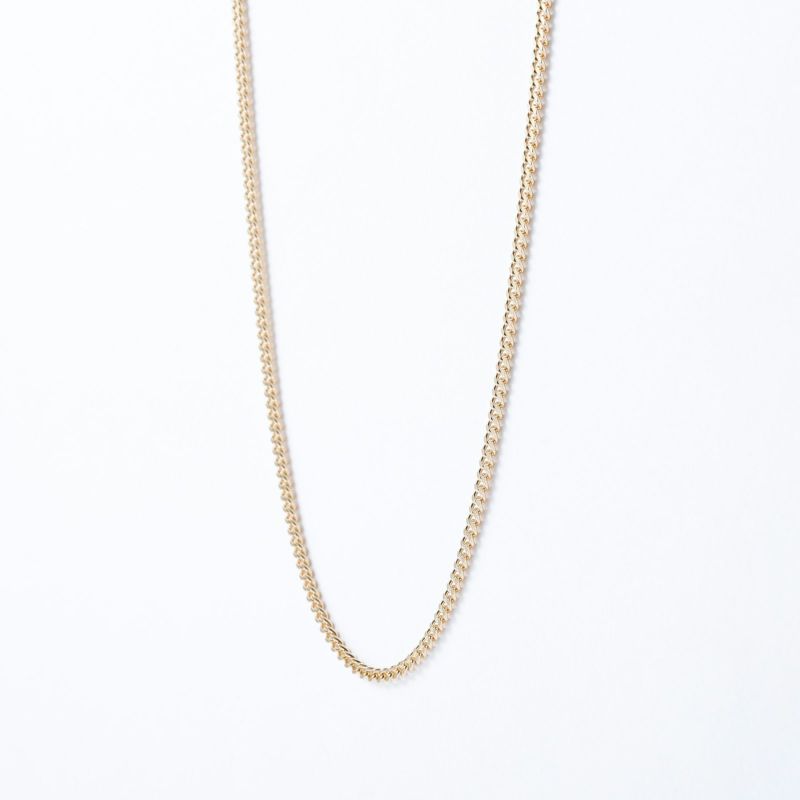 上下にカットを施した2面カット喜平です。K18イエローゴールドの輝きを楽しんで頂けます。シンプルなチェーンはユニセックスにご愛用いただけます。独立行政法人造幣局の検定マーク(※ホールマーク)入り。