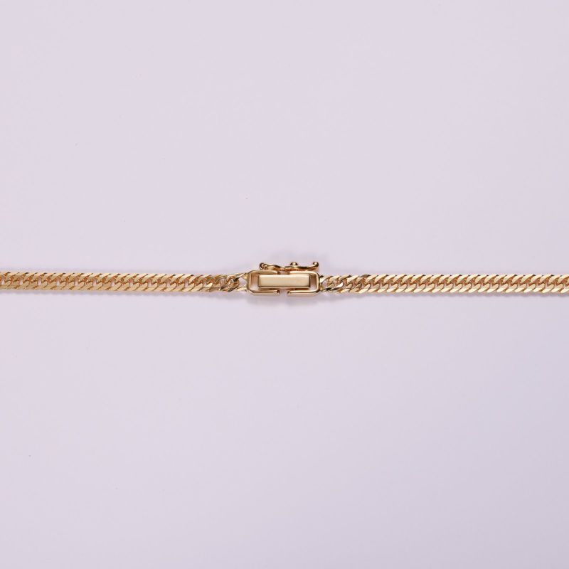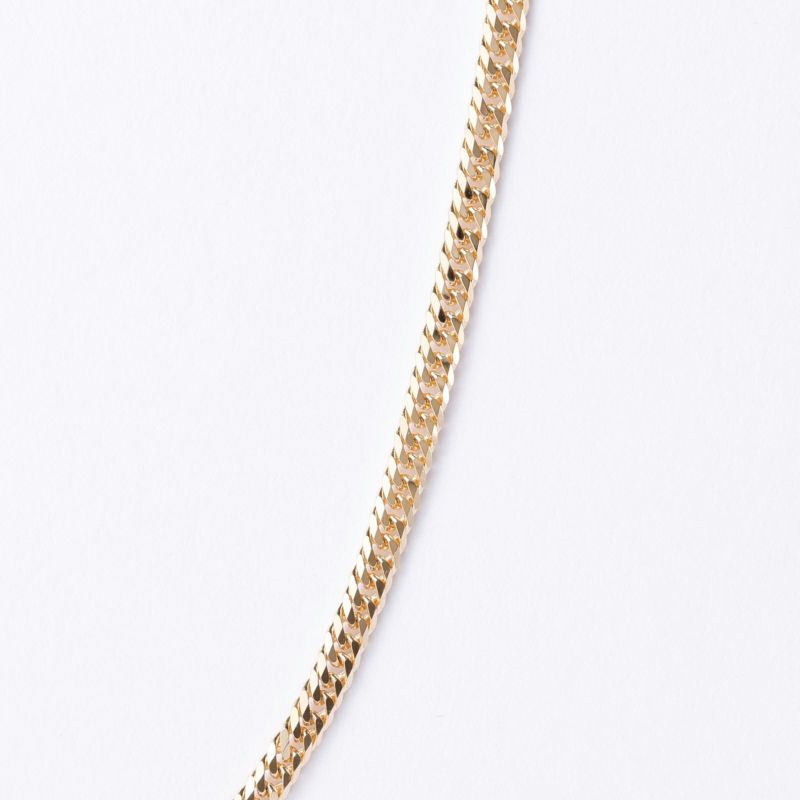 上下左右にカットを施した、輝きのある6面カット喜平です。幅広く見え、カットが多い分輝きが増すのが特徴です。シンプルなチェーンはユニセックスにご愛用いただけます。独立行政法人造幣局の検定マーク(※ホールマーク)入り。