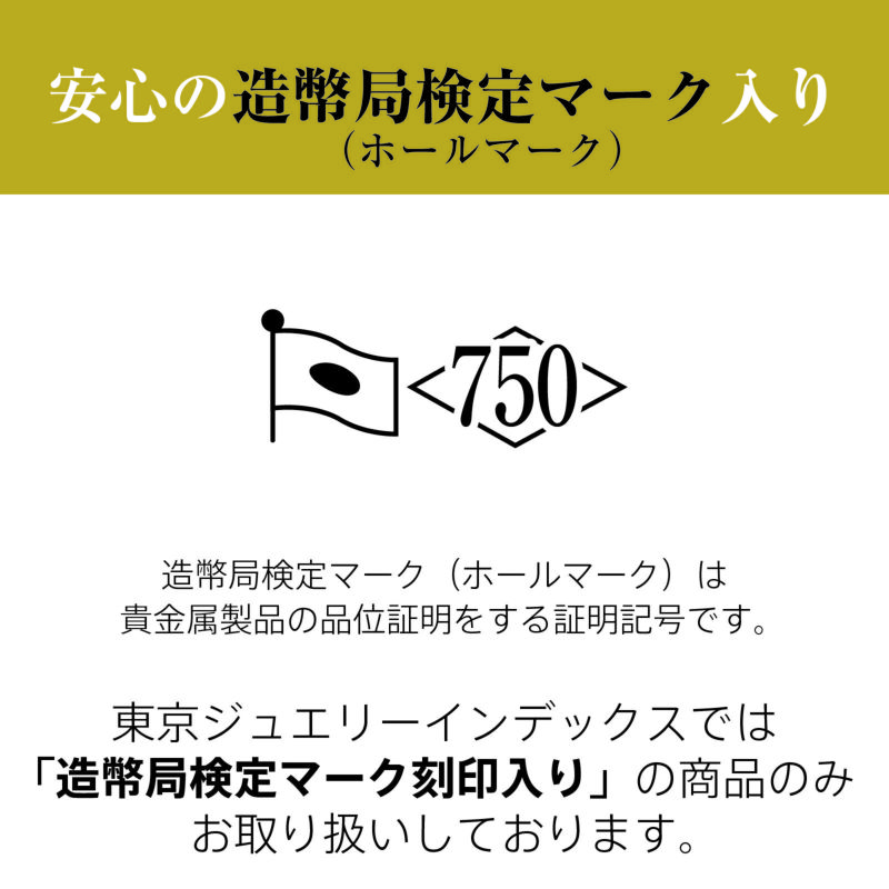 上下にカットを施した2面カット喜平です。K18イエローゴールドの輝きを楽しんで頂けます。シンプルなチェーンはユニセックスにご愛用いただけます。独立行政法人造幣局の検定マーク(※ホールマーク)入り。