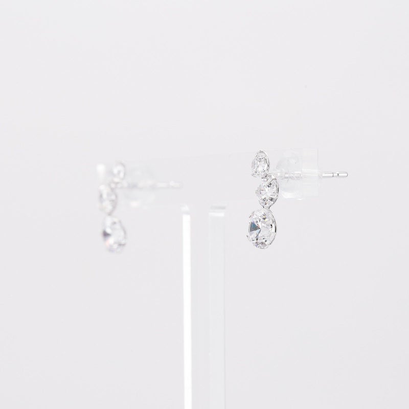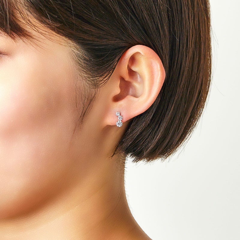 K10ホワイトゴールドにキラキラ輝くキュービックジルコニアを3粒使用したピアスです。曲線が女性らしさを演出してくれます。