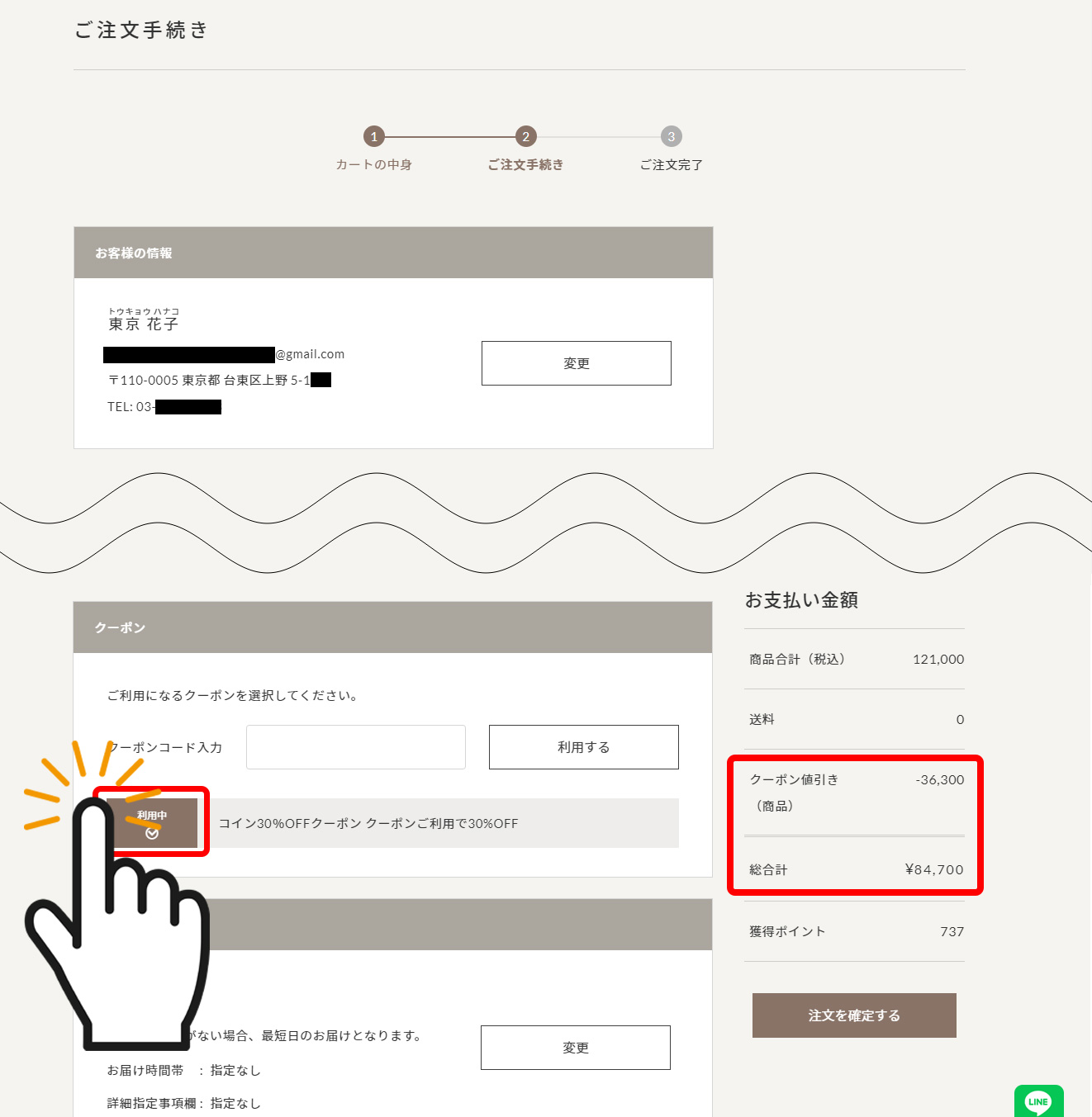 ※クーポンが2つ以上表示されている場合、必ず使用したいクーポンにチェックを入れて下さい。