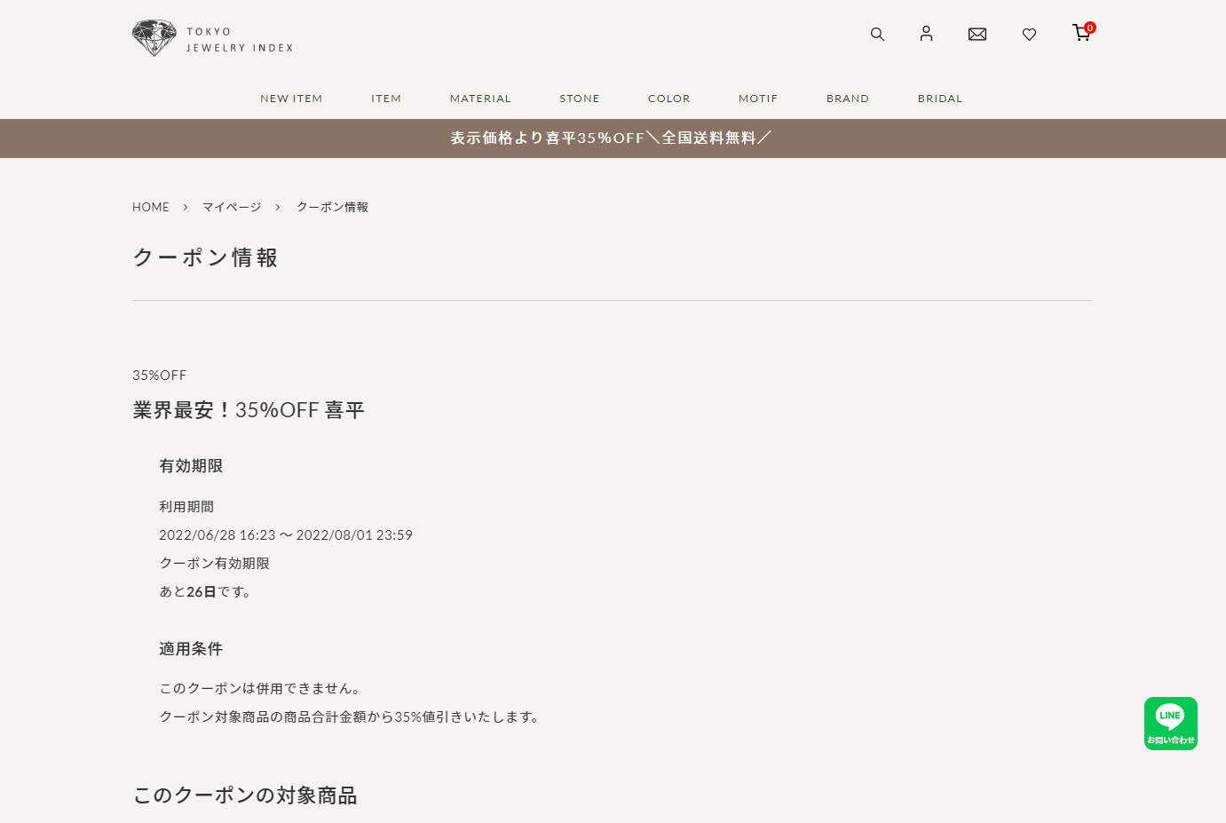 上記のように現在ご使用頂けるクーポンがすべて表示されます。
